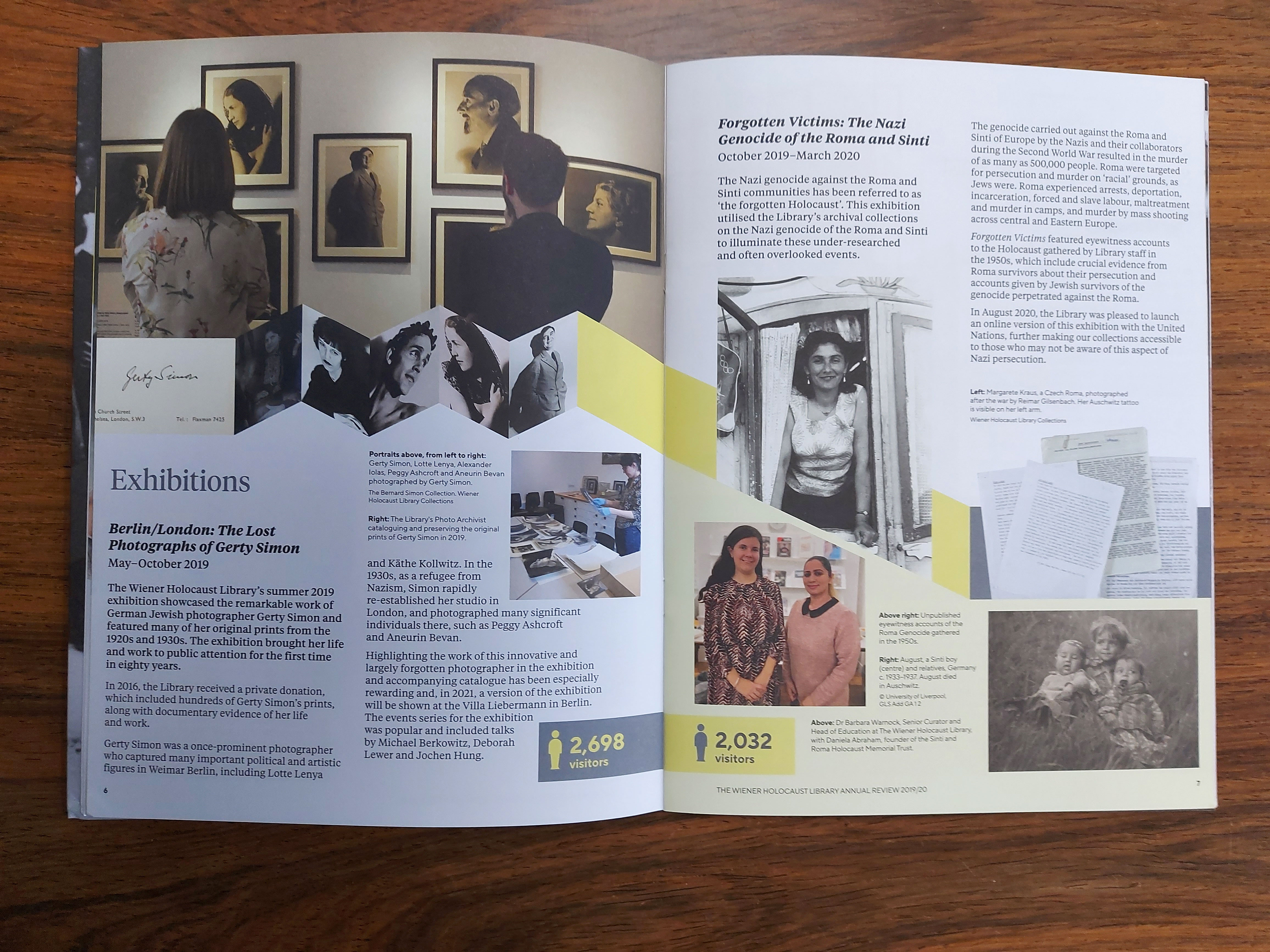 Bivouac has designed a number of Annual Reviews for the Wiener Holocaust Library, each with a unique concept relevant to their work in that specific year. Each document is thoughtfully and carefully developed to create an end result that is attractive to supporters and funders, and showcases the Library’s many successes (and in some cases, challenges).