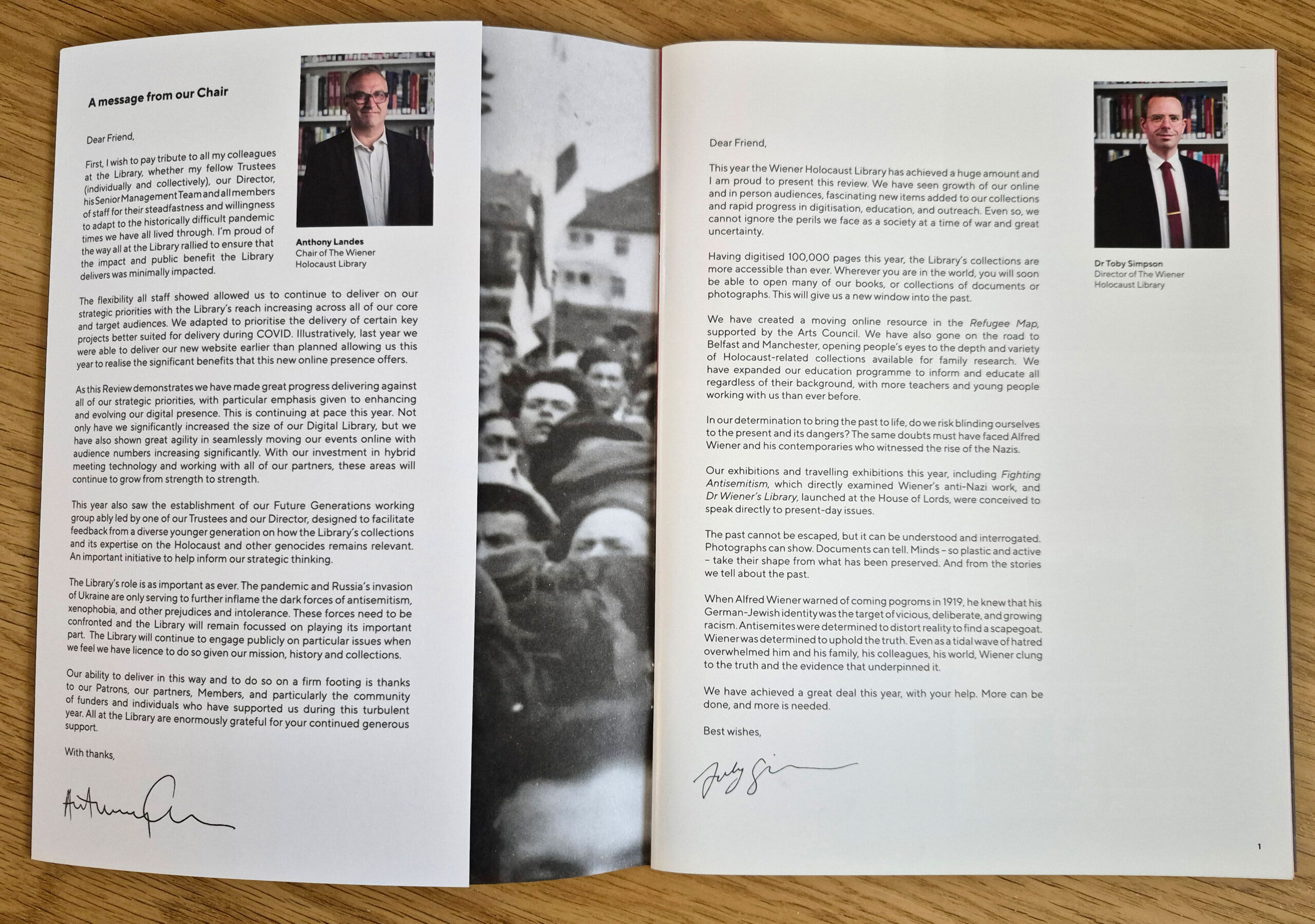 The Wiener Holocaust Library’s 2022–23 Annual Review was conceived to be a more editorial approach than in previous years.
